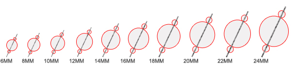 Rebar size is another decisive factors when creating shop drawings for a structure or a building. Two conventions are being used by Ferro Metal Industries Inc. for rebar sizes – Imperial sizes and Metric sizes. Imperial bar method (USA convention) represents rebar diameters in fractions of 1/8 inch, such that #8 = 8/8 inch = 1 inch diameter. Metric bar method (Canadian convention) represents the rebar diameter in millimeters, rounded to the nearest 5 mm. Steel Rebar Sizes available in Metric Bar method are from 6MM upto 40MM.